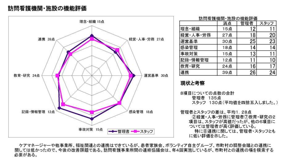 訪問看護機関・施設の機能評価結果レーダーチャート