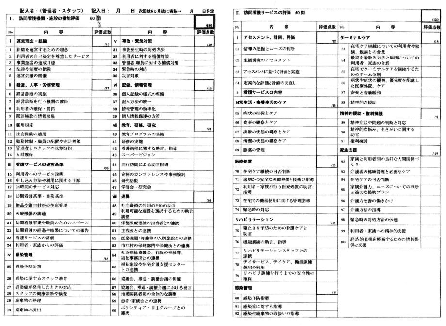 自己評価 評価点数記載票